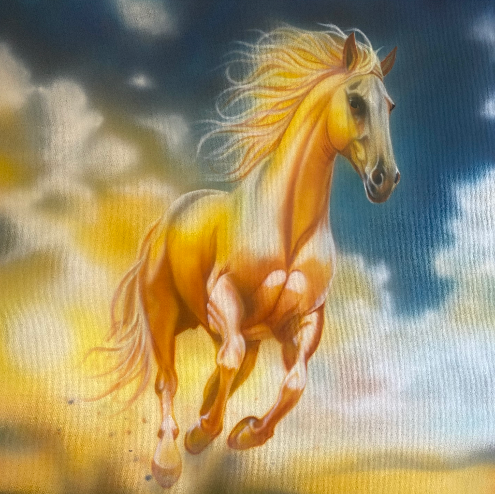"The Golden Era" airbrushed on 24" x 24" canvas.